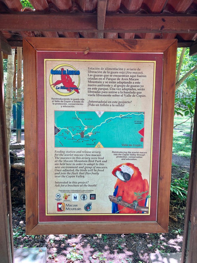 Es war früher Nachmittag, weshalb wir uns entschlossen, direkt von hier aus ein Tuk Tuk zum Vogelpark zu nehmen. Das Macaw Mountain Bird Park & Nature Reserve ist ein Rescue Center für hauptsächlich Ara’s, aber natürlich auch andere Vögel in Not. Die Roten Ara’s waren den Maya’s heilig. Sie hielten sie damals als Haustiere, da sie in ihnen den Sonnengott K´inich Aha sahen und auch heute sind sie neben dem Quetzal noch Nationalvogel von Honduras. Die Fahrt mit dem Tuk Tuk auf der Schotterstraße den Berg hinauf war abenteuerlich, aber auch erfrischend. Wir vereinbarten, dass uns der Fahrer in 1,5 Stunden wieder abholen soll und sahen beim Hineingehen, wie er sich in seinem Tuk Tuk schlafen legte.