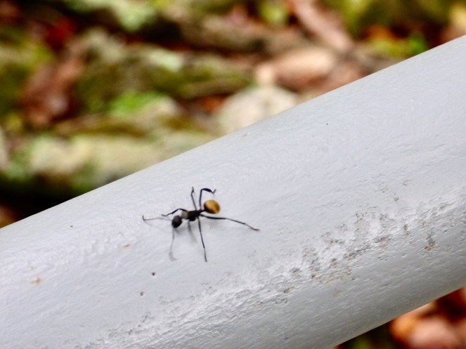 Es war herrlich! Weit und breit kein Mensch. Nur ich, die Ara’s und ab und zu leider auch ein paar übergroße Insekten. Die Anlage ist sehr gepflegt und später sah ich auch hier und da einen „Gärtner“, der sich redlich mit dem Laub abmühte.