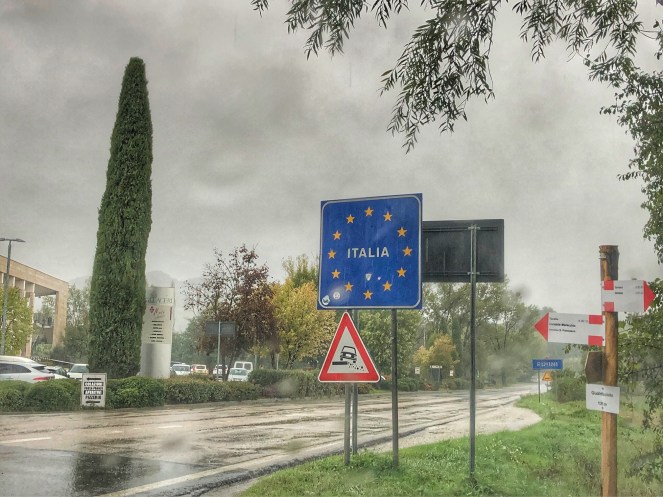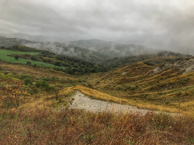 Wieder zurück in Bella Italia wurde das Wetter leider auch nicht besser. Wir fuhren auf schmalen und zum Teil nur schwer passierbaren Landstraßen durch die Berge. Aber wir hatten ja Zeit. Durch das fehlende Sightseeing in San Marino war es noch früher Vormittag. Vielen Autos begegneten wir nicht. Wir picknickten unterwegs und hielten hier und da mal für ein Foto an. Die Landschaft war sehr schön, aber so ein bisschen bedröppelt wirken die Fotos leider trotzdem.