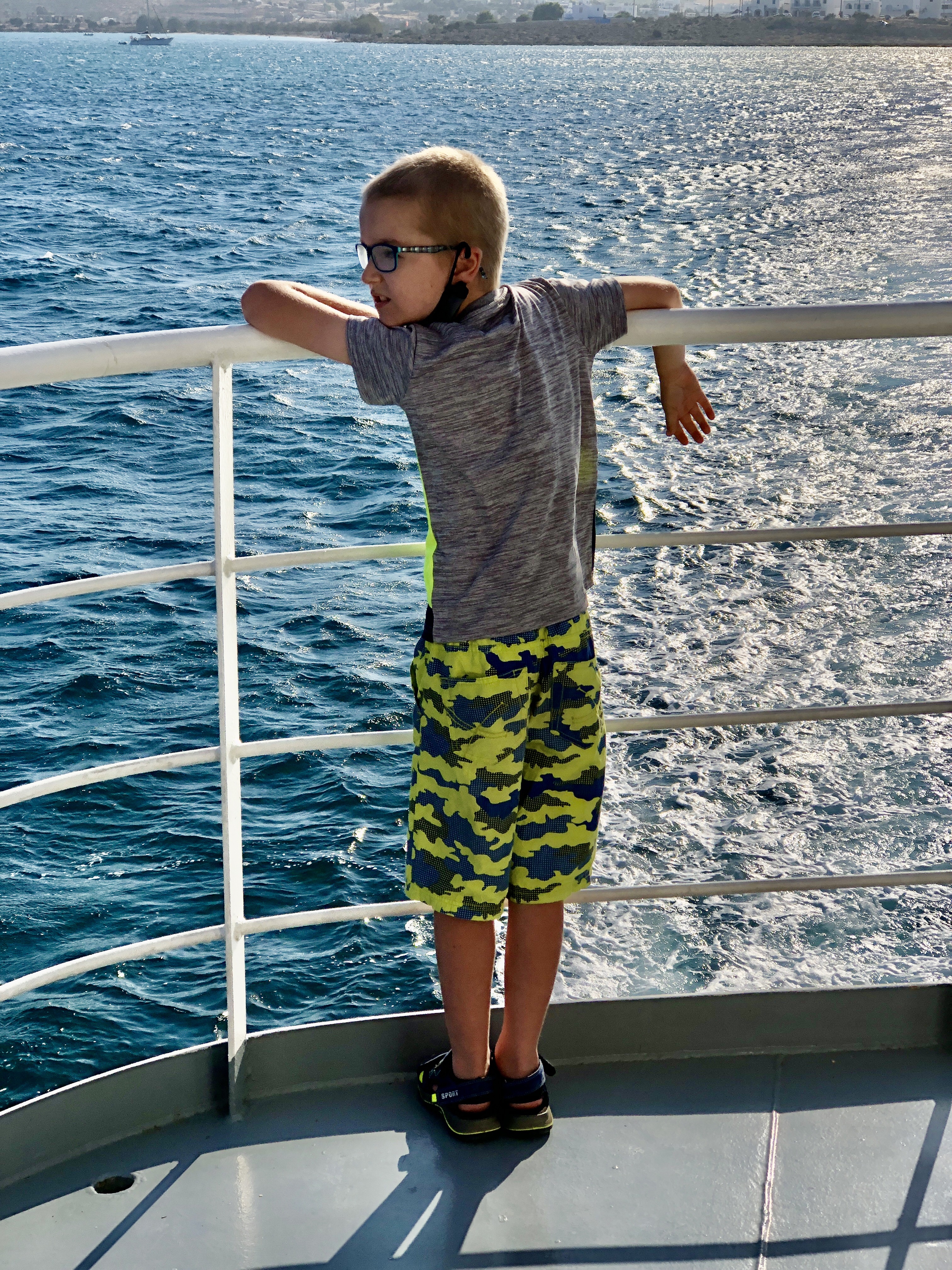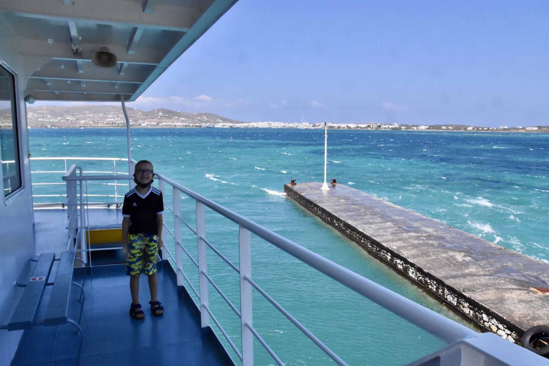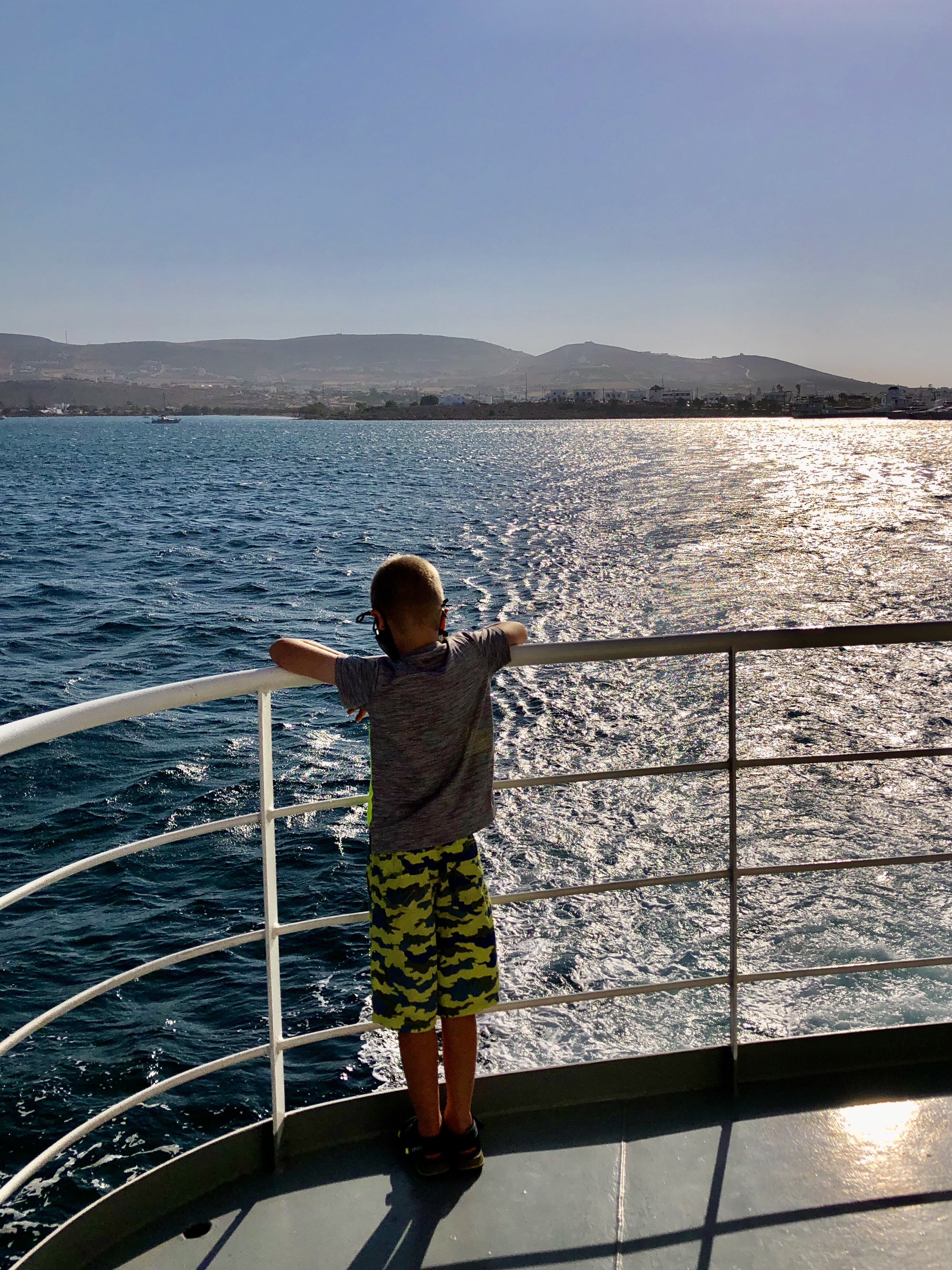 Nachdem wir uns satt gesehen hatten – oder besser ich mich, da Mika die ganze Zeit nur mit seinem Ball beschäftigt war – gingen wir gemütlich zurück zur Fähre, wo unser kleiner Flitzer stand. Die Fähre legte gerade ab. Wir setzten uns unter die Pinienbäume am Hafen und vertrieben uns die kurze Wartezeit mit Pokemón spielen. Die Rückfahrt war sehr angenehm und verlief problemlos. Da wir erst gegen 19 Uhr zurück im Hotel waren, sind wir heute nicht mehr in den Pool gegangen. Stattdessen ließ ich den angenehmen Tag beim Kofferpacken Revue passieren.