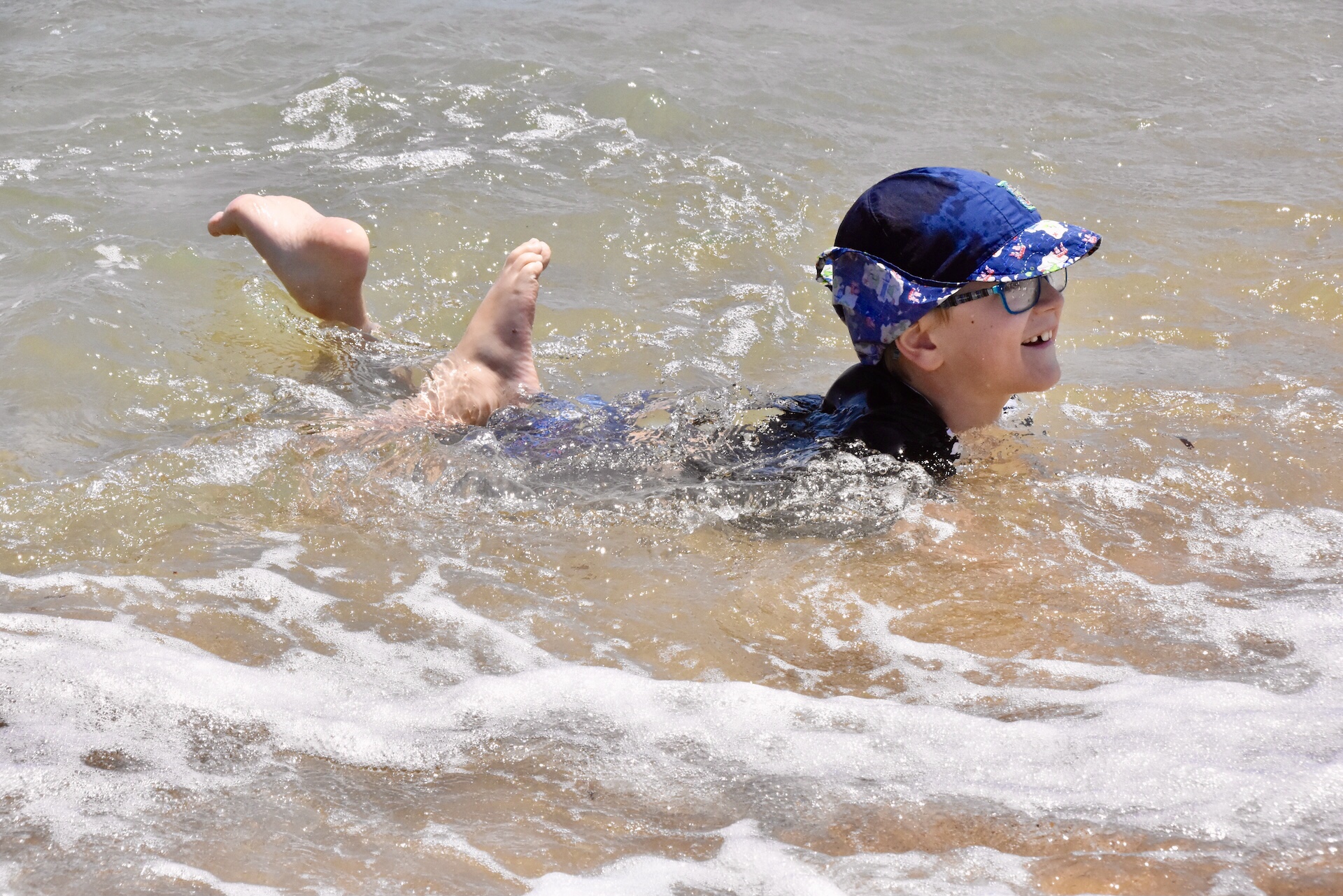Während wir auf die Bestellung warteten, erfreute sich Mika wieder an den Wellen und schloss mit einem Mädchen aus dem Nachbar-Restaurant Freundschaft. Beide waren hinterher mehr nass als trocken, aber bei über 30 Grad ist das ja sehr verlockend. Linkes Foto is made by Mika, haha. Das Wesentliche ist drauf!